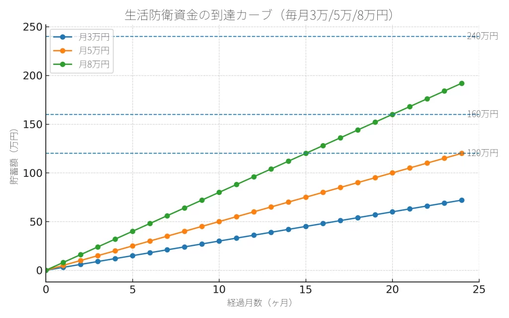 → 15%なら生活費6ヶ月分が約3年で貯まる安全域。